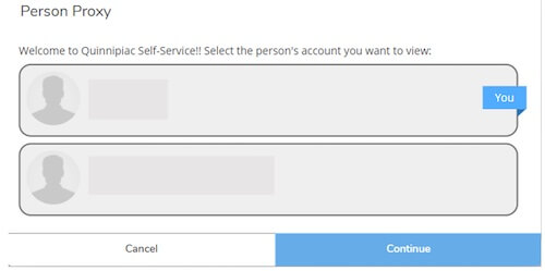 All students can grant their parent, guardian, spouse or authorized person access to a proxy version of Self-Service, which enables the proxy user to access academic and/or financial information for the student. As such, the proxy will have access to view grades, account activity and student statements as well as make online payments and set up payment plans on behalf of the student. Additionally, by granting proxy access, Quinnipiac University will email both students and authorized proxy users regarding important billing information.