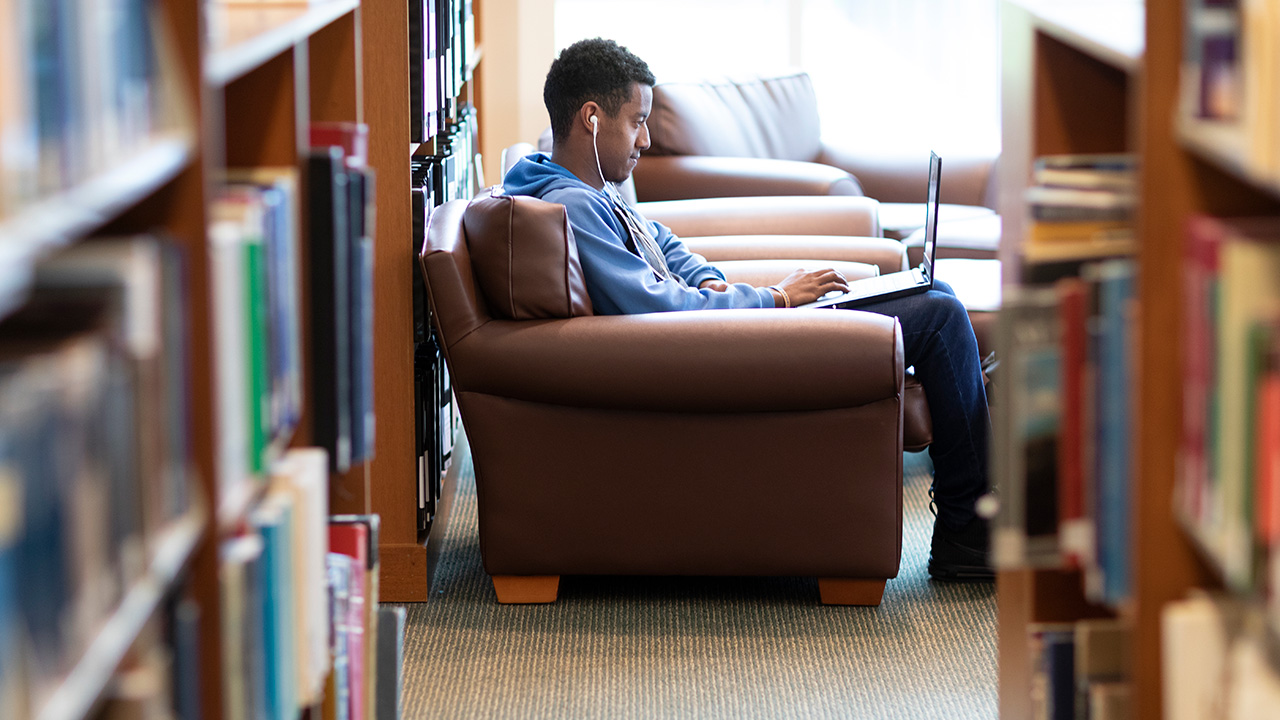 The Edward and Barbara Netter Library can be found on the North Haven Campus. This space features comfy chairs and ottomans, as well as great quiet spaces.